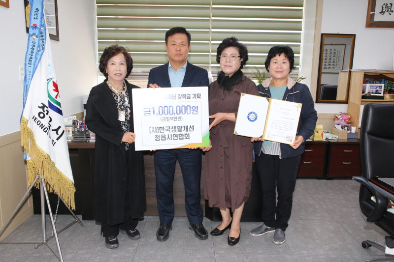 같은 날, (사)한국생활개선정읍시연합회(회장 박정옥)도 100만원의 장학금을 전달했다.