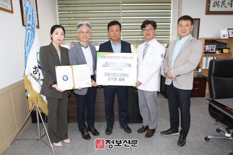 4일 정읍시립요양병원 임직원은 지역 인재 육성을 위해 시민장학재단에 500만원의 장학금을 기탁했다.