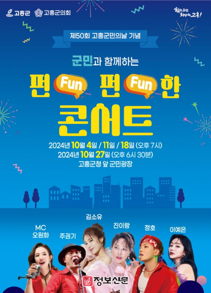 이번 공연은 제50회 고흥군민의 날을 기념해, 군민들에게 더 많은 문화예술 향유 기회를 제공하기 위해 ‘군민의 날 전야제’ 행사를 대체하여 진행된다. 공연은 10월 4일(오후 7시), 11일(오후 7시), 18일(오후 7시), 27일(오후 6시 30분)로 한 달간 매주 1회씩 열린다.