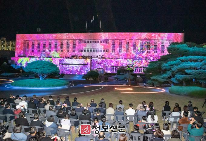 광양시립합창단이 준비한 식전 공연으로 분위기가 한껏 고조된 가운데 ‘빛을 쏘다’라는 주제의 오프닝 퍼포먼스가 시작됐다. 시립국악관현악단의 ‘대정창의’ 연주가 시립합창단의 ‘아리랑’ 공연과 어우러지며 전통과 현대를 결합한 독특한 예술공연이 펼쳐졌고 예술과 기술을 결합한 미디어아트의 힘이 행사 참석자들에게 그대로 전해졌다.