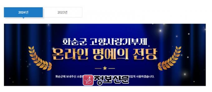 ![]() 화순군, 고향사랑기부제 군 홈페이지 내 ‘명예의 전당’ 개설 |