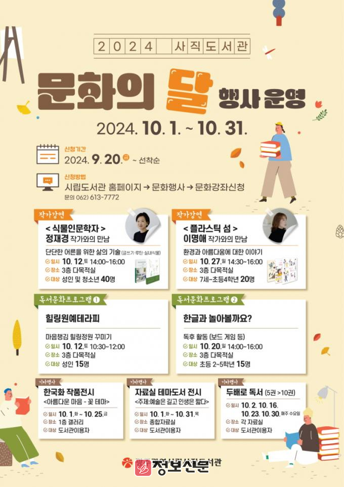 ![]() 광주시립도서관, “시월애(愛) 북크닉 가요” 행사 개최 |