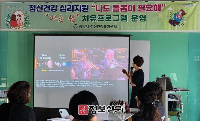 ![]() 광양시정신건강복지센터, 「마음 쉼 힐링프로그램」 운영 |