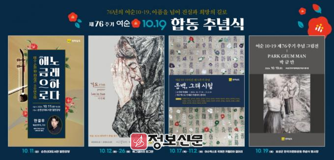 12일부터 26일까지 여수 에그갤러리에서는 이인혜 작가의 ‘기도, 1948’ 주제 그림전이 열리고, 17일부터 11월 2일까지 여수 엑스포 국제관 카멜리아 갤러리에서 여순사건 유족이 활동하는 ‘소석회’ 회원들의 민화 특별전도 선보인다.