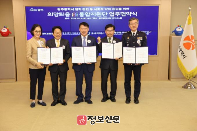 광주시교육청, 광주시, 광주경찰청, 사회복지법인 굿네이버스는 8일 시청 비즈니스룸에서 ‘범죄피해 학생과 가정의 일상회복과 건강한 성장’을 지원하기 위한 업무협약을 체결했다.