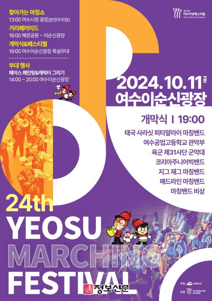 ![]() ‘제24회 여수마칭페스티벌’이 오는 11일 이순신광장 일원에서 개최된다. |