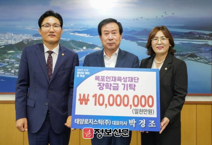 ![]() 박경조 태양로지스틱(주) 대표, 목포인재육성재단에 장학금 1000만원 기탁 |