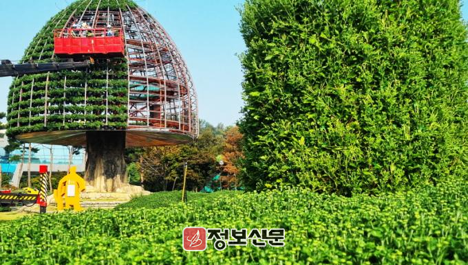 함평군은 함평엑스포공원 주제관 앞에 꿈나무와 희망나무 조형물에 현애국화 화분 4천 본을 투입해 웅장한 꽃탑을 조성하며 대전 준비에 한창이다.