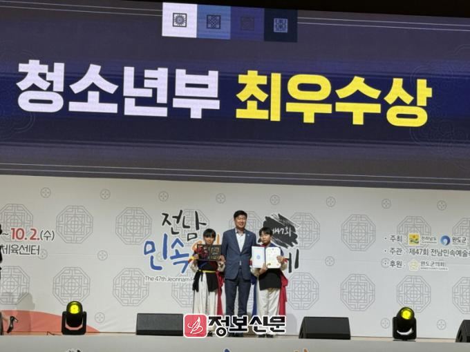 지난 9월 30일부터 10월 2일까지 완도에서 개최된 제47회 전남민속예술축제에서 청소년부 참가팀 ‘지산초등학교(진도소포걸군농악)’는 최우수상을 받았고, 일반부 참가팀 ‘진도유배지 한춤보존회(진도유배지 한춤)’는 장려상을 받았다.