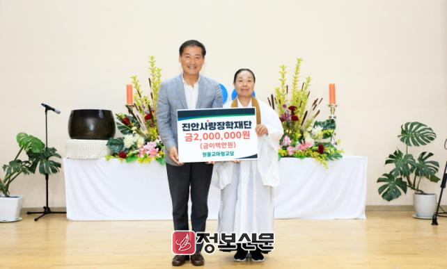 지난 9일에는 원불교 마령교당(교무 서경은)에서 원불교 마령교화 100년 기념 대법회를 맞아 진안사랑장학재단에 200만원의 장학금을 기탁했다.