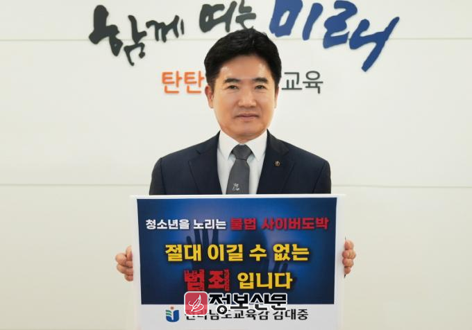 김대중 교육감은 10일 사회관계망서비스(SNS)에 올린 게시물을 통해 “우리 아이들이 불법 사이버 도박의 위험에서 벗어나 건강한 삶을 살아갈 수 있도록 다양한 교육과 예방활동을 통해 지원하겠다.”고 밝혔다.