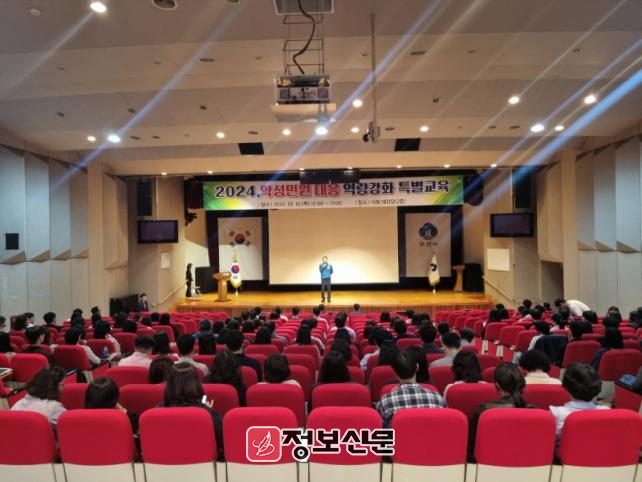 강사로 초빙된 이용범 국민권익위원회 특별민원전문관은 그동안의 경험과 사례를 중심으로 ▲특별(악성·고질)민원의 유형, 특성 및 행태 ▲민원 응대의 기본자세 ▲사례별 응대 요령 ▲특별민원 처리 정석 등의 내용으로 교육을 진행했다.