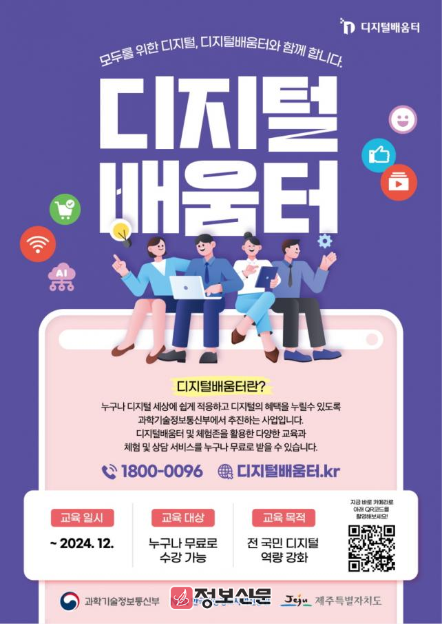 교육을 희망하는 도민이나 단체는 디지털배움터 콜센터(1800-0096) 또는 누리집(www.디지털배움터.kr)을 통해 신청하면 된다.