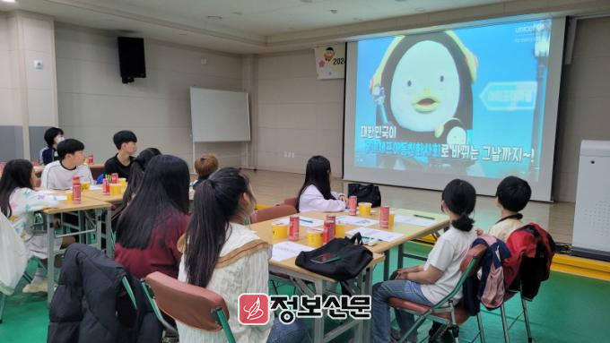 아동위원들은 유니세프 아동친화도시 관련 아동권리교육을 시청한 후 회의를 시작했다.