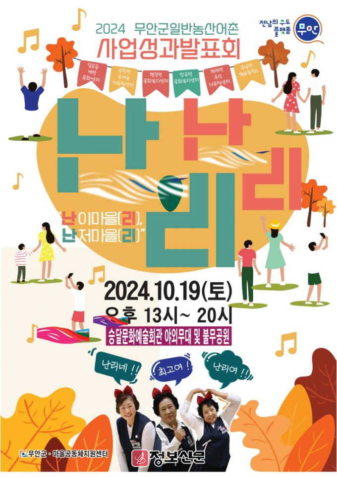난리난리 행사는 무안군과 마을공동체 주관으로 지난해에 처음 시작했으며, 읍‧면들과 마을이 모여 지역의 자긍심을 고취하고 화합과 소통을 주제로 군민이 주체가 되는 일반농산어촌개발사업 준공지구 사업성과 발표회이다.