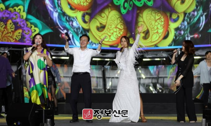 윤병태 시장은 이날 피날레 무대에 함께 올라 맘마미아 공연 출연진들, 객석의 모든 관객들과 함께 춤을 추며 분위기를 최고조로 끌어 올렸다.