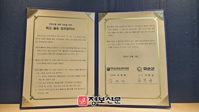 조영래 교육장은 “지방소멸 대응을 위해 화순군과 협력하게 되어 기쁘다”라며, “이번 협약을 통해 폐교가 훌륭한 복합문화공간으로 새롭게 태어나 지역공동체와 교육 발전에 크게 기여할 수 있기를 기대한다”고 말했다.