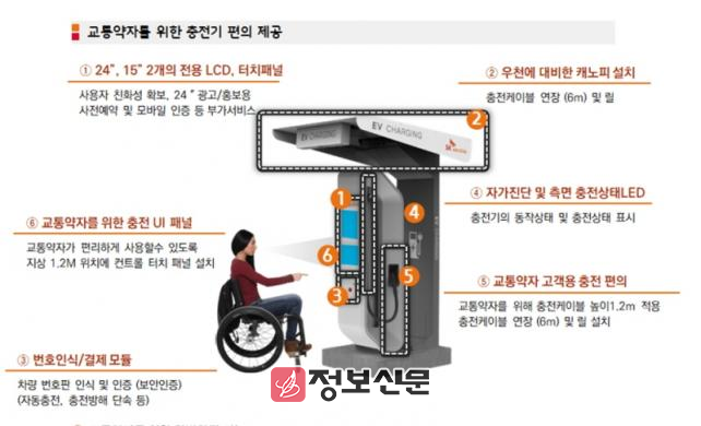 특히 이번에 설치되는 충전기는 조작부를 1.2m 이하로 하고, 충전 케이블을 경량화하는 등 몸이 불편한 시민들도 쉽고 편하게 사용할 수 있으며, ‘누구나 안전하고 편하게 이용할 수 있는 전기차 충전 기반시설 구축’을 목표로 한다.