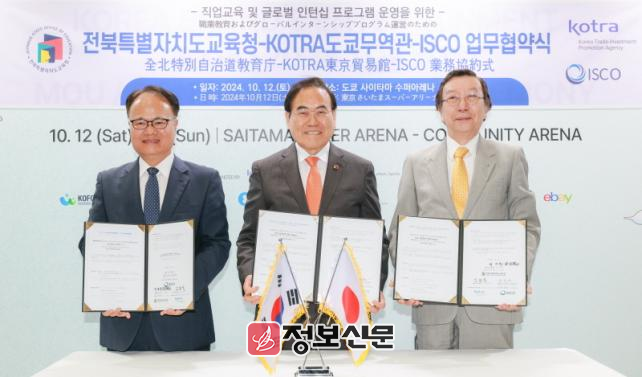 서거석 교육감은 12일 사이타마 수퍼 아레나에서 열린 한류박람회에서 KOTRA 도쿄무역관 및 ISCO 혁신전략센터와 글로벌 인턴십 프로그램 협력을 위한 업무협약을 체결했다.