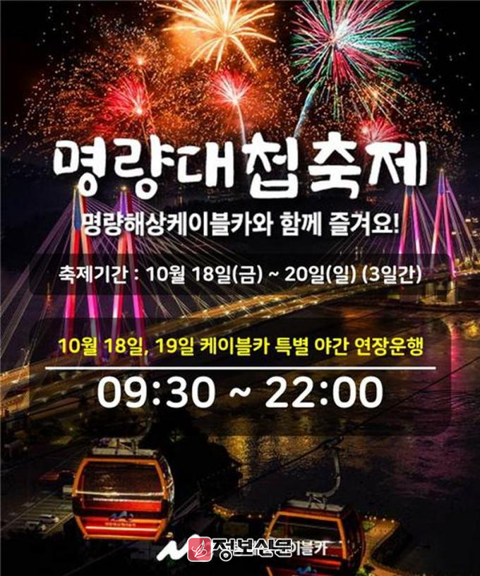![]() 명량해상케이블카, 명량대첩축제 기간 야간 연장 운영<사진제공: 명량해상케이블카>