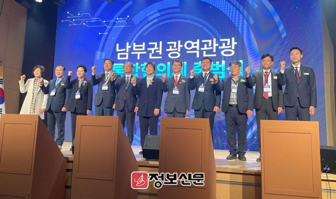 명창환 전남도 행정부지사는 “관광객은 시·도 경계를 따지지 않고 여행계획을 세운다. 남부권의 아름다운 관광자원을 구슬처럼 엮어 감동을 선사하겠다”며 “현재 우리나라는 경제수도 수도권, 행정수도 충청권, 두 축으로 이뤄졌지만 10년 후면 관광수도 남부권이 우뚝 설 것”이라고 강조했다.