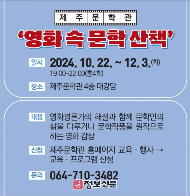 ![]() 제주문학관, ‘영화 속 문학 산책’ 프로그램 운영 |