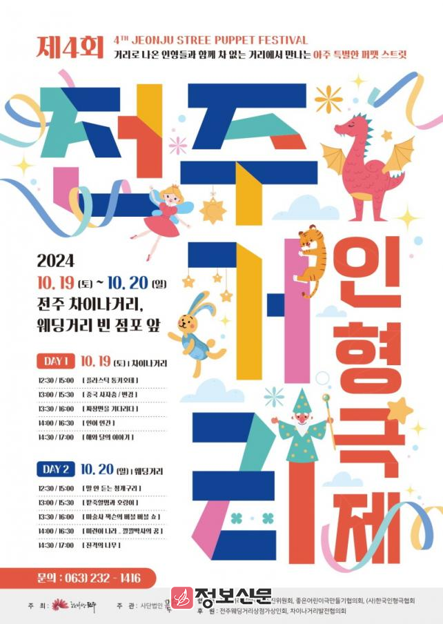 전주시는 오는 19일과 20일 이틀간 전주 차이나거리와 웨딩거리 등 전주 구도심 일대에서 ‘제4회 전주거리인형극제’를 개최한다.