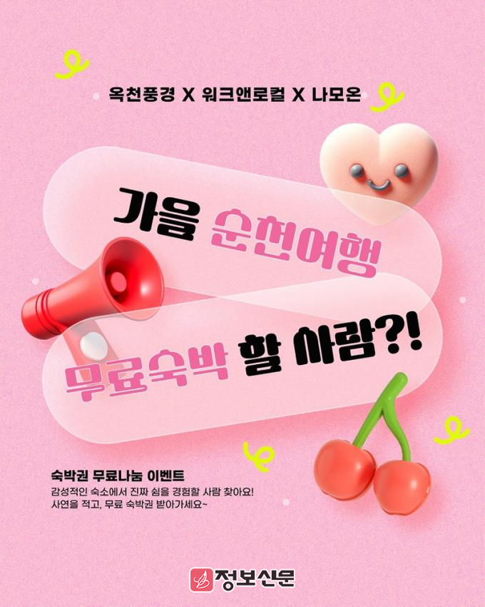 1차 이벤트는 고즈넉한 풍경이 매력적인 ‘옥천풍경’(호남1길 10)과 함께 17일까지 진행된다. 2차 이벤트는 모던한 감각과 전통이 어우러진 ‘나모온’(호남길 140)에서 10월 25일부터 11월 1일까지 이어진다.
