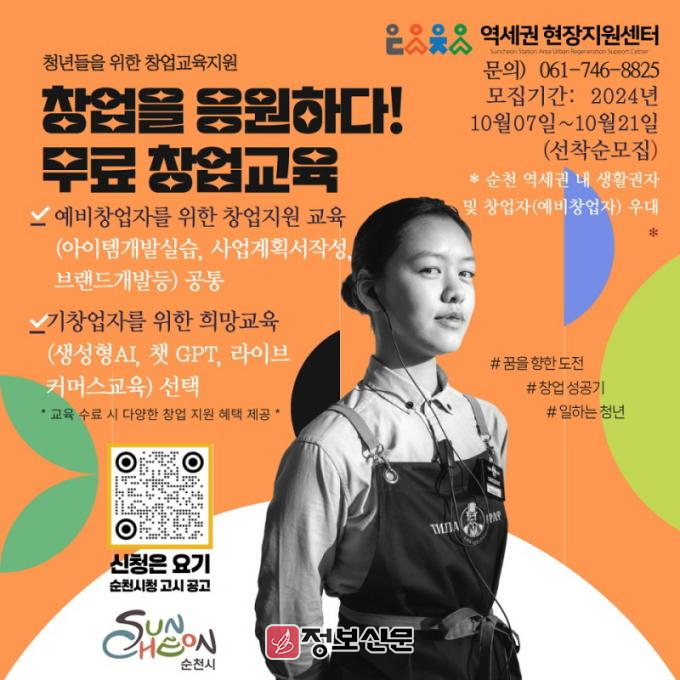![]() 순천시, 역세권 로컬 창업 DIY 워크숍 교육생 모집 |