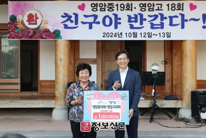 우승희 영암군수는 “고향을 생각하는 영암중·고 동문 어르신들의 마음을 받들어 지속가능한 영암을 위해 기부금을 소중하게 쓰겠다”라고 답했다.