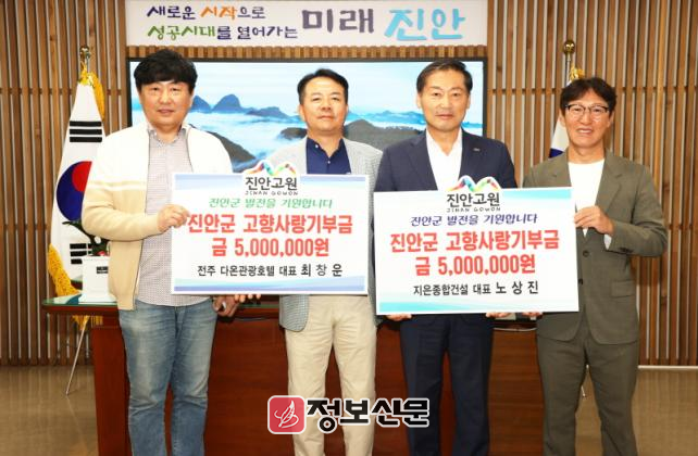 전라고등학교 동문인 노상진 대표와 최창운 대표는 “진안을 응원하고 싶은 마음에 기부를 결심하게 됐다”고 말하며, “고향사랑기부제를 통해 진안군 발전에 힘을 보탤 수 있다는 걸 알리고 싶었다”며 소감을 전했다.