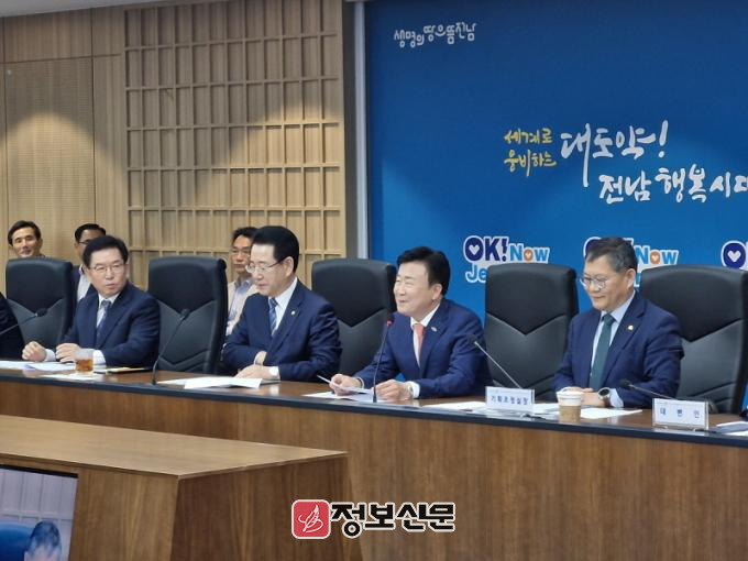 ![]() 정기명 여수시장이 지난 14일 전남도청 동부청사에서 열린 ‘동부권 정책회의 및 기자간담회’에 참석, 김영록 전라남도지사에게 섬박람회 도비 추가지원을 건의했다.