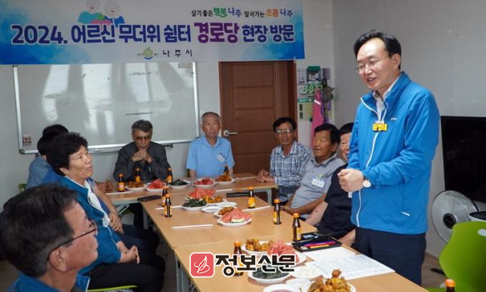 ![]() 나주시가 과학기술정보통신부에서 주관한 ‘2025년 스마트 경로당 공모사업’에 최종 선정돼 국비3억100만원을 확보했다. 내년부터 읍면동 대표 경로당 20개소를 대상으로 비대면 여가교육 서비스 제공을 위한 양방향 화상 시스템을 구축할 계획이다. 윤병태 시장이 마을 경로당에서 주민들의 건의사항을 경청하고 있다. (사진제공-나주시) |