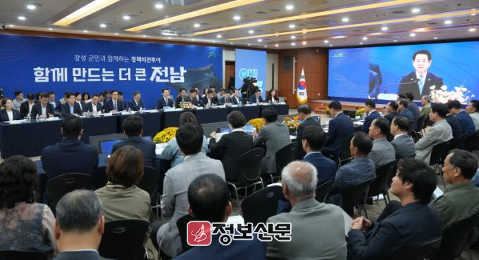 전라남도는 이날 장성군청 아카데미실에서 김영록 지사, 김한종 장성군수, 심민섭 장성군의회 의장, 김회식·정철·박현숙 전남도의회 의원, 청년과 군민 등 80여 명이 참석한 가운데 장성군 정책비전투어를 개최했다.