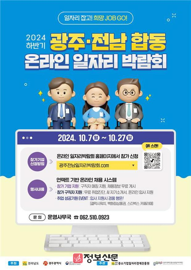![]() 광주전남지방중소벤처기업청, 2024 하반기 광주전남 합동 온라인일자리박람회 운영 |