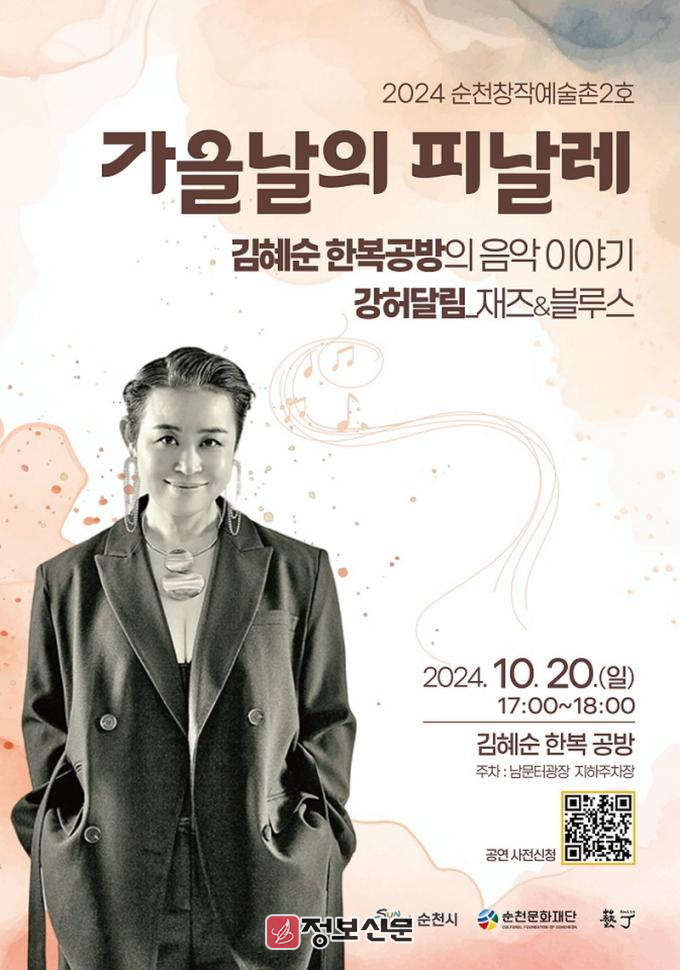 ![]() 순천창작예술촌 2호, 가을날의 피날레 강허달림 재즈&블루스 공연 개최 |