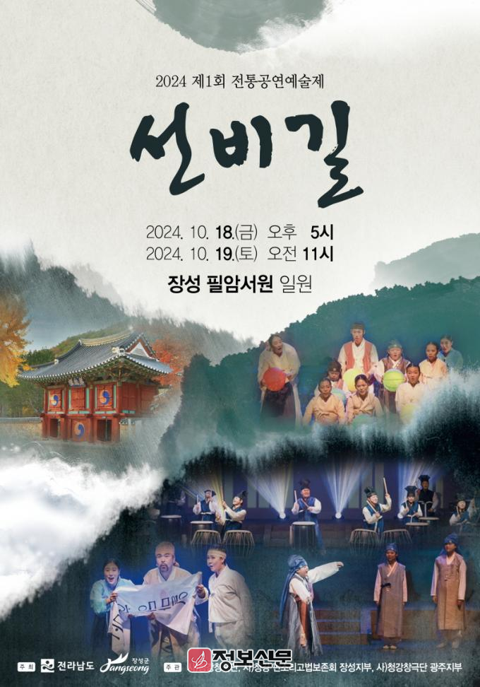 19일 오전 11시부터 시작되는 2부는 창극 ‘선비길’ 갈라 콘서트와 전통악기 연주가 펼쳐질 예정이다. 우천으로 인한 공연시간 변경 등에 관한 문의는 청강창극단 또는 장성군 문화관광과(061-390-7226)로 직접 연락하면 된다.