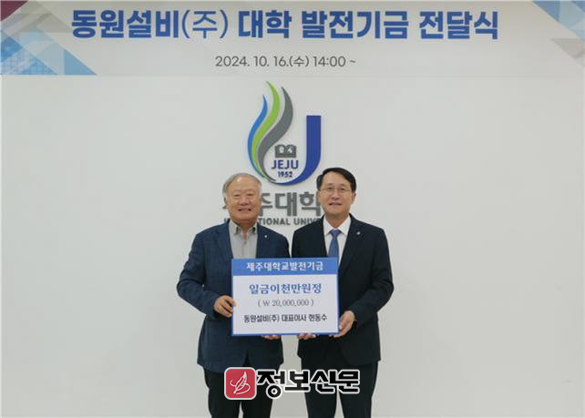 ![]() 동원설비(주) 현동수 대표이사, 제주대에 2000만원 전달 |