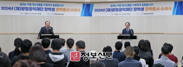 나이 팔순에 장학재단을 설립하게 됐다고 밝힌 그는“이 세상이 거칠고 힘들지만, 정직하게 노력하는 이에게 기회는 찾아온다는 걸 잊지 말고, 적은 장학금이지만, 광영공익재단의 담긴 마음과 희망을 함께 받아 공부에 요긴하게 사용하면 좋겠다”고 전했다.