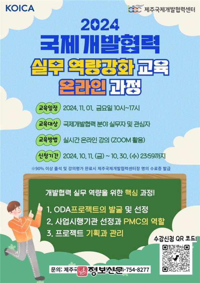 ![]() 제주국제개발협력센터, 2024 국제개발협력 실무역량강화 교육 온라인 과정 실시 |