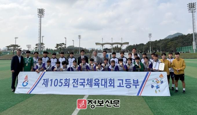 ![]() 2024년 제105회 전국체육대회 축구 경기 여자18세이하부 분야에서 최종 우승한 광양여고 축구부가 기념촬영을 하고 있다.