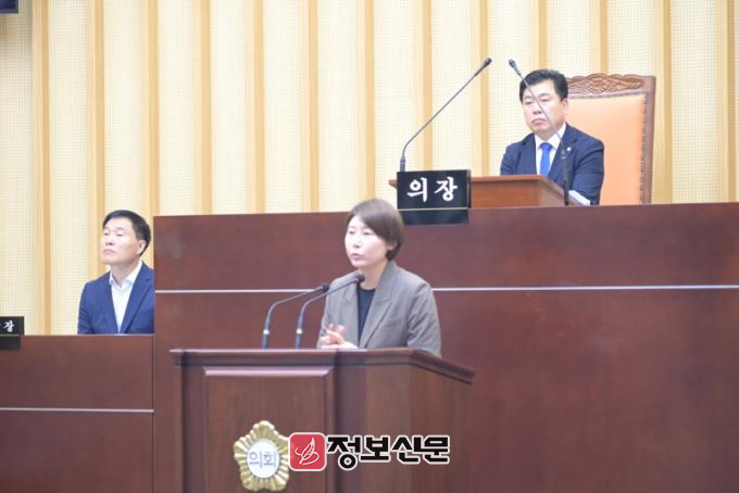 ![]() 광주 서구의회 김형미 의원이 지난 18일 서구의회 2층 본회의장에서 5분 발언을 하고 있다. (사진=김형미 의원 제공) |