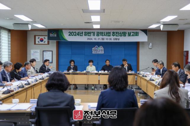 보고회에서는 민선8기 공약사업에 대한 추진상황을 공유했으며, 특히 사업 추진과정에서 나타난 문제점에 대한 개선·보완책을 점검하고 최선의 대안을 찾을 수 있도록 서로 협력방안과 향후 추진 방향에 대해 심도 있는 의견을 나눴다.