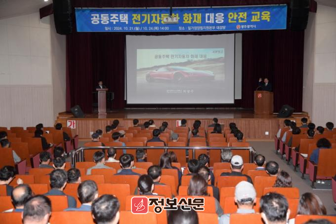 지하에 전기차 충전설비가 설치된 458개 공동주택 관리소장 및 안전관리자, 시·구 관련부서 공무원을 대상으로 한 이번 교육에는 최양주 광주소방본부 교수가 ▲전기자동차 화재 특성 ▲화재 예방법 ▲화재 발생 때 소방시설을 활용한 안전한 대응방법 ▲입주민의 피난 행동 요령 등을 교육했다.