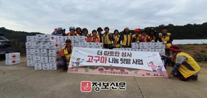 상사면마중물보장협의체는 지난 6월 어려운 이웃들을 돕기 위해 나눔 텃밭에 고구마를 식재했다. 이후 5개월간 회원들이 틈틈이 잡초를 제거하고 정성껏 돌본 결과, 이날 10kg 상당의 고구마 100박스를 수확했다.