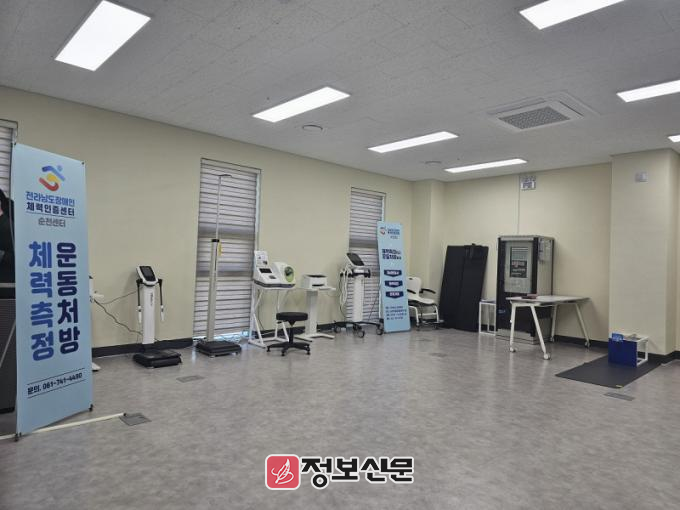 전남장애인체력인증센터는 대한장애인체육회의 공모사업에 도내 최초 선정되어 올 9월에 개관한 어울림체육센터 3층에 자리잡고 있으며, 매년 1억 7천 4백만원의 기금을 지원받아 순천시장애인체육회가 운영한다.