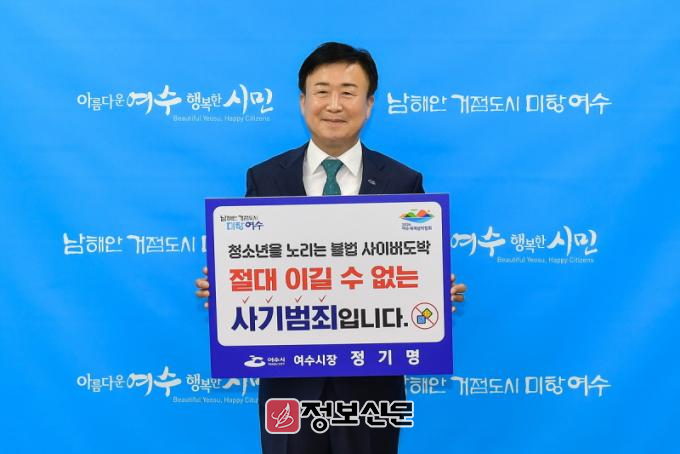 ![]() 정기명 여수시장이 지난 23일 서울경찰청에서 주관하는 ‘청소년 도박 근절 릴레이 캠페인’에 동참했다.
