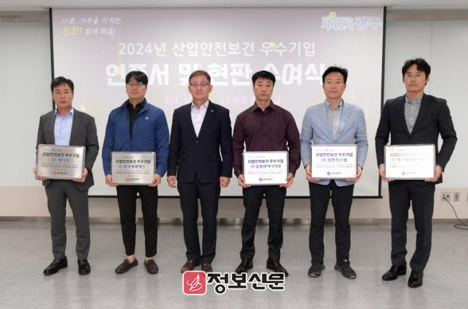 한편, 광주시는 이날 행사에서 올 하반기 광주시 산업안전보건 우수기업으로 선정된 ▲㈜동방엔지니어링(대표 박세준) ▲㈜성원시스템(대표 김유재) ▲㈜에니트(대표 기송도) ▲㈜에스제이에프앤지(대표 김홍주) ▲㈜한국씨앤에스(대표 나용범) 등 5곳에 인증서와 현판 수여식을 가졌다.