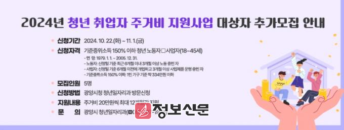 ![]() 광양시, 청년 취업자 주거비 지원사업 추가 모집 |