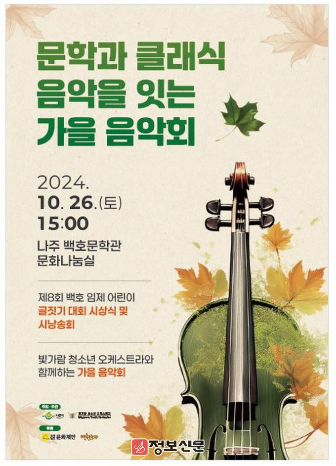 ![]() 나주시, 백호임제 글짓기대회 시상식 ‘시낭송&콘서트’ 개최 |